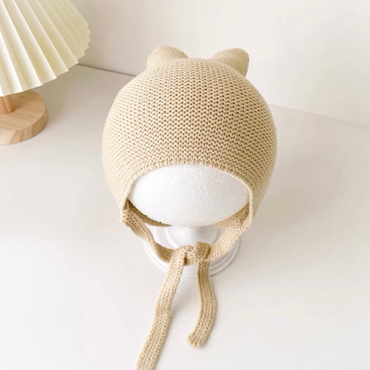 ちょこんとした耳が可愛いベビーニットキャップ。
