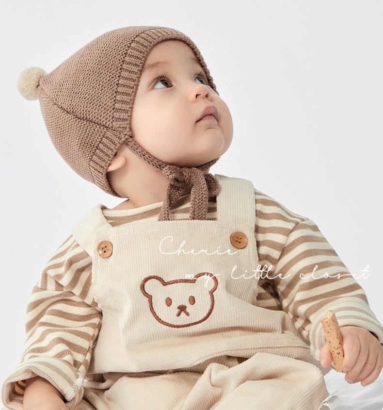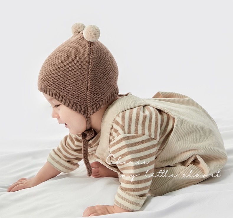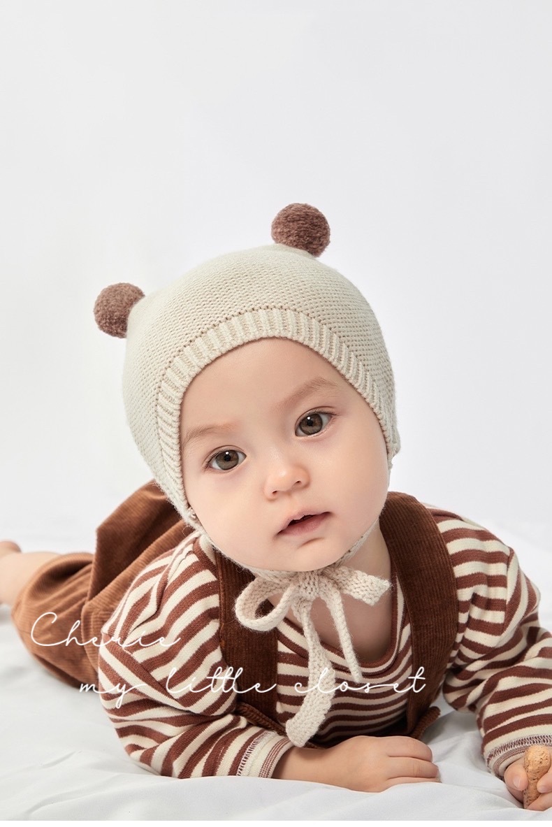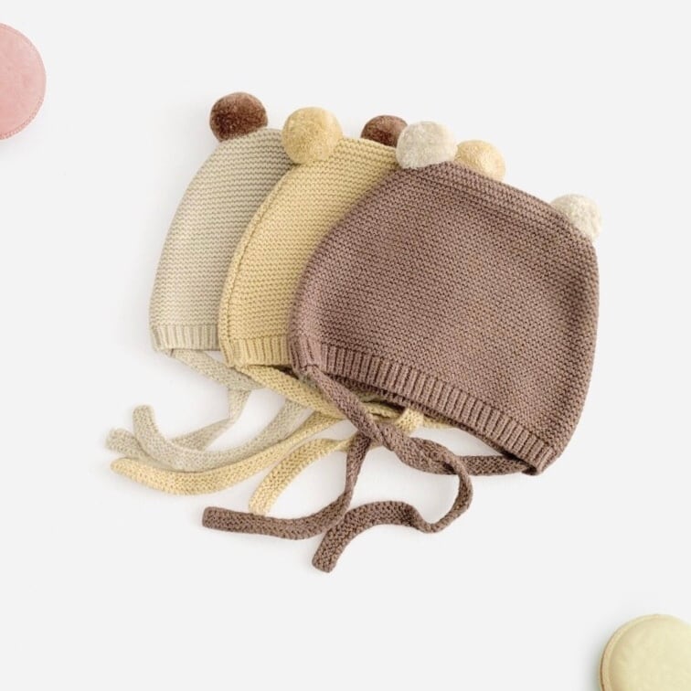 ニット素材で暖かいので秋冬のお出かけや薄毛ベビーちゃんにもオススメです◎