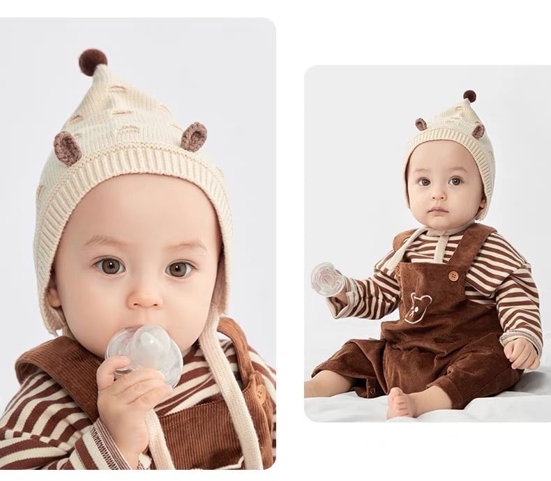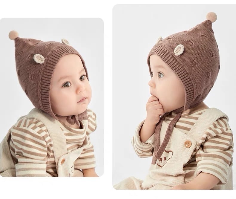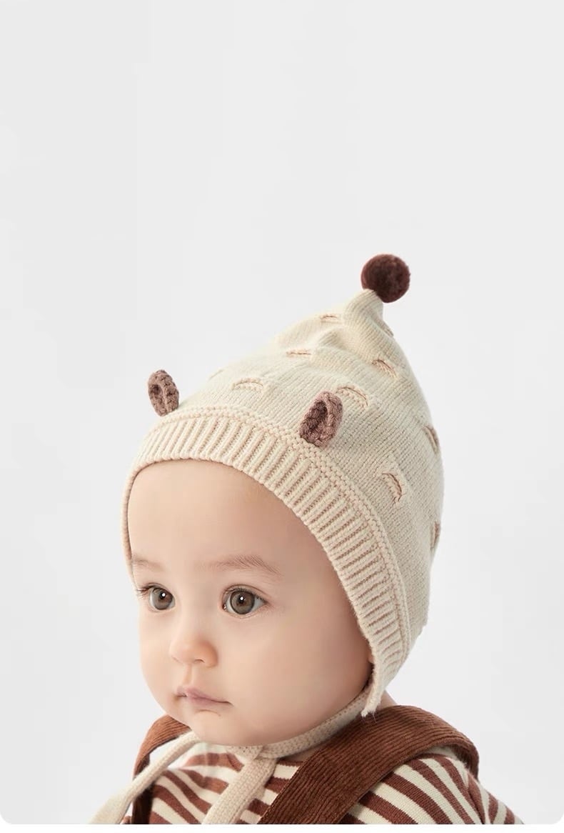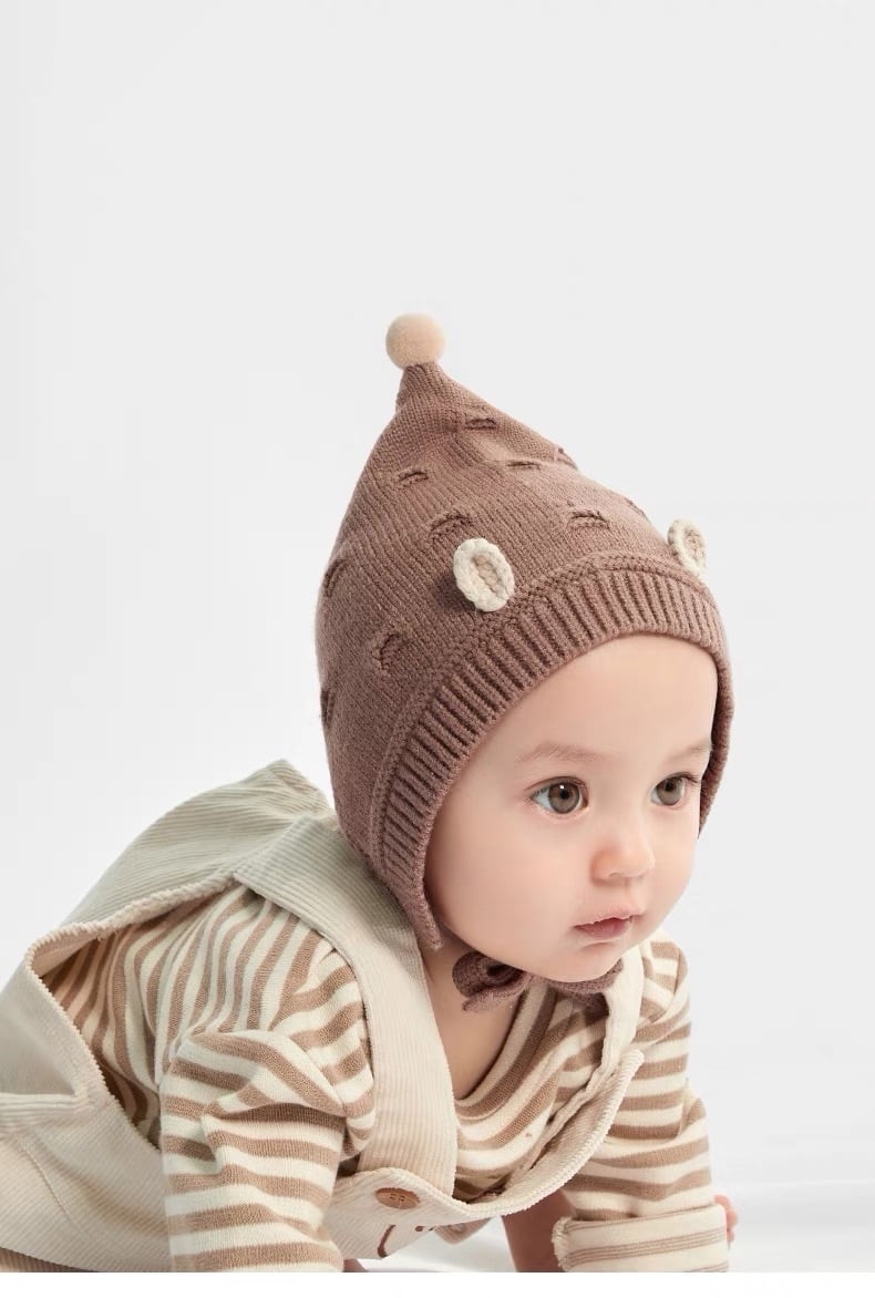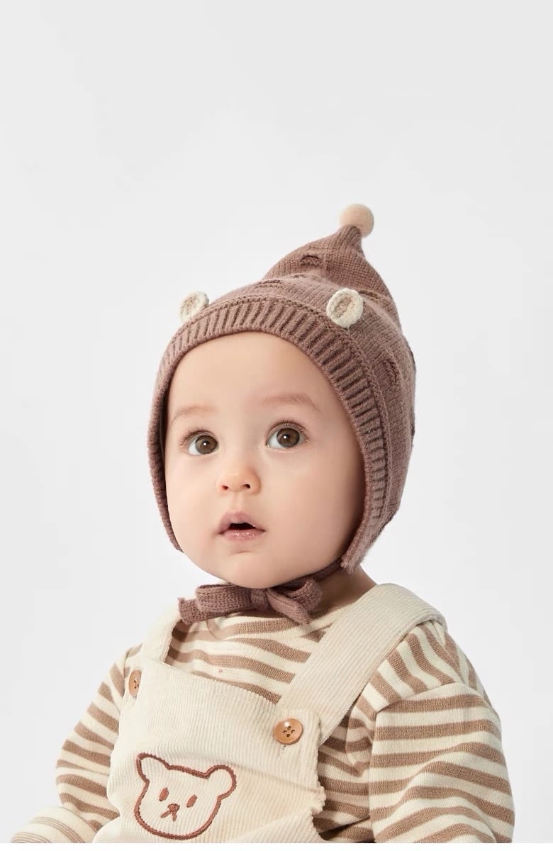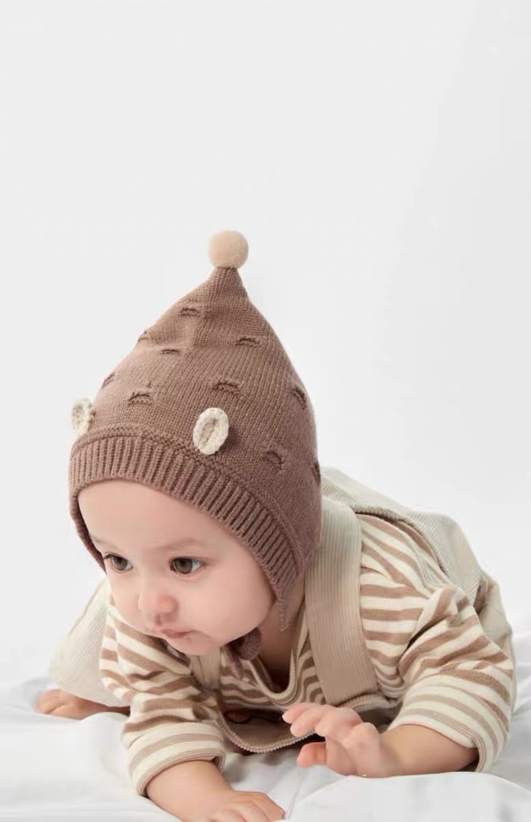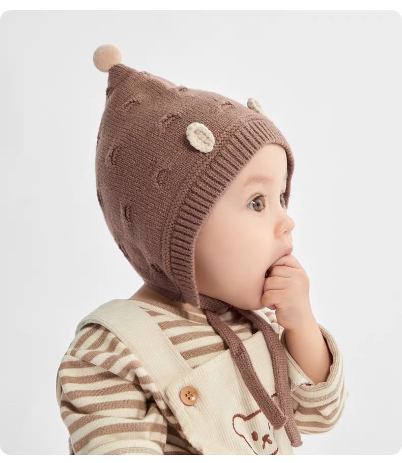 ニット素材で暖かいので秋冬のお出かけや薄毛ベビーちゃんにもオススメです◎