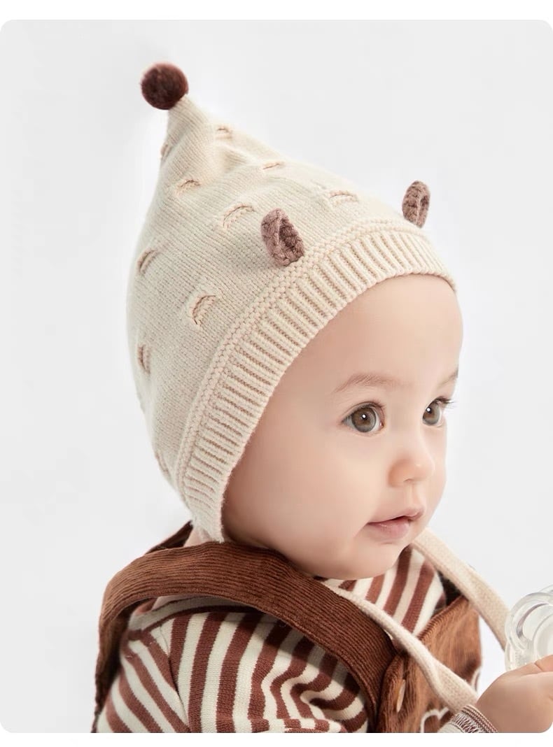 小人さんデザインが可愛いベビーニットキャップ。