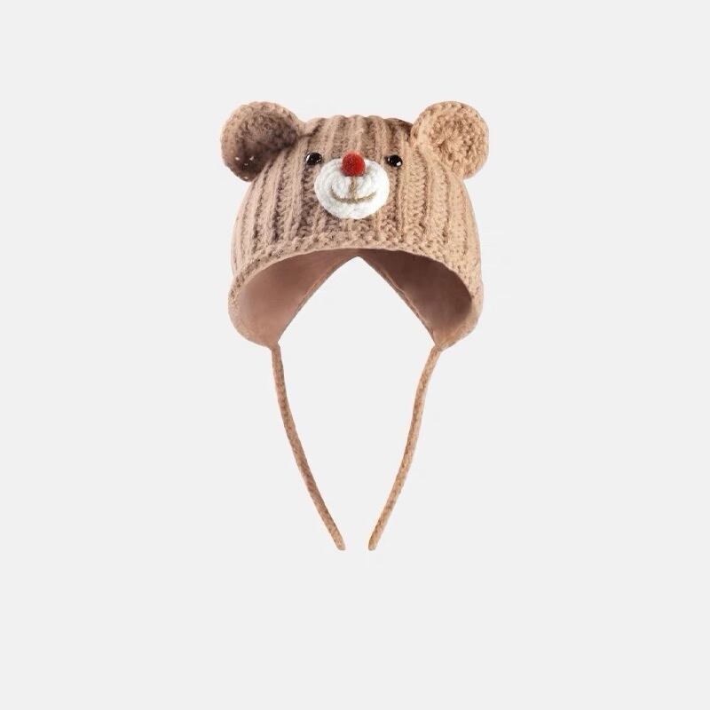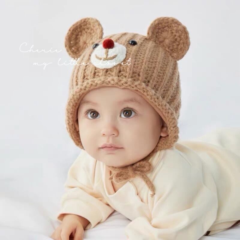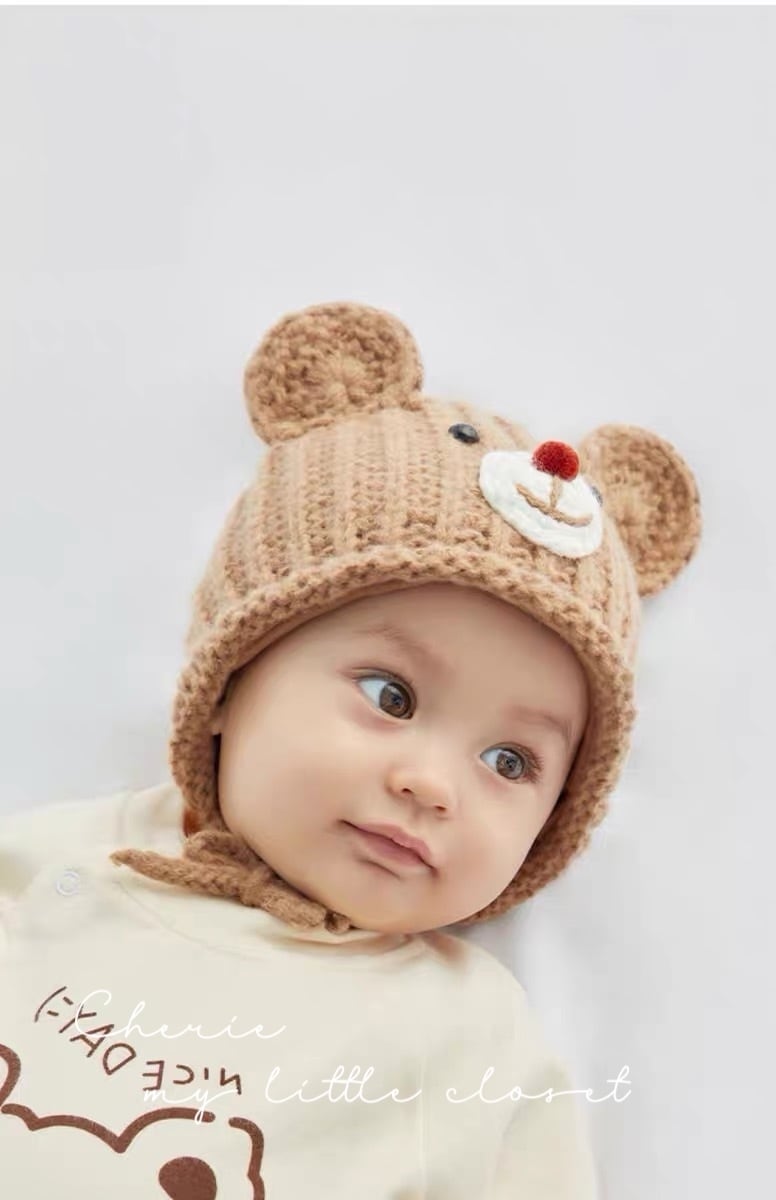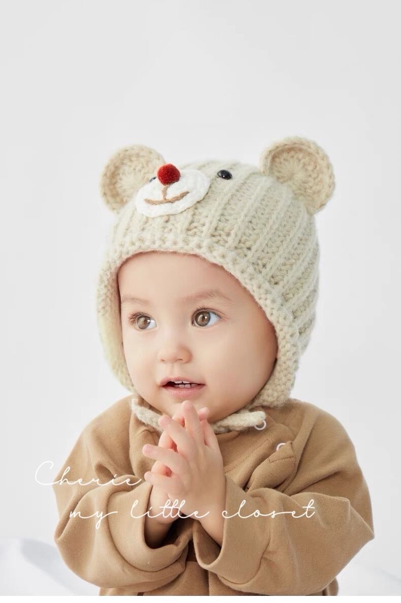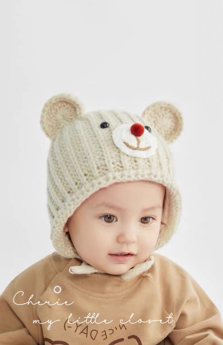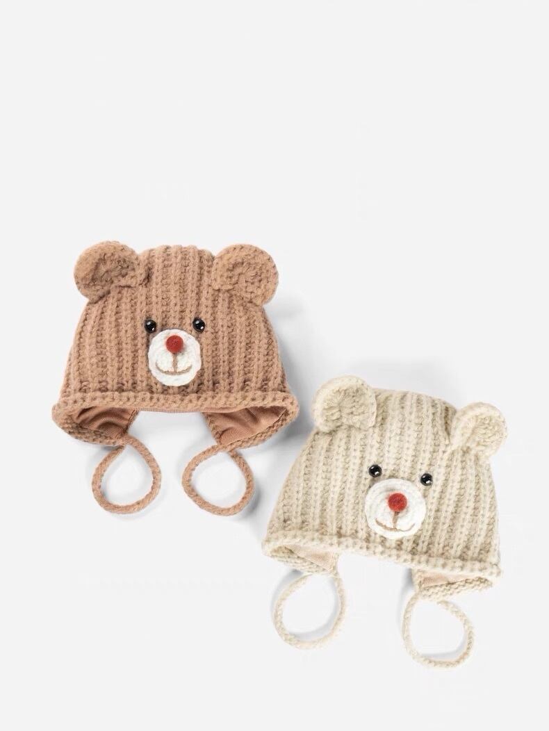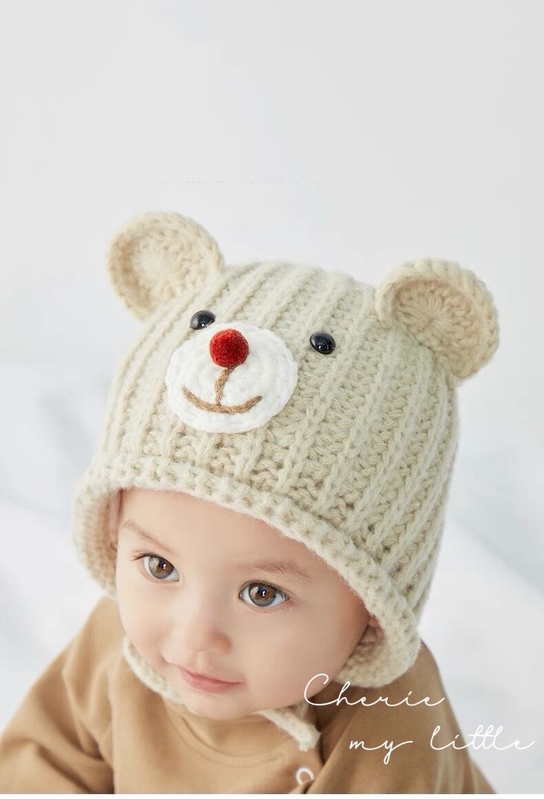 くまさんのお顔デザインが可愛いベビーニットキャップ。