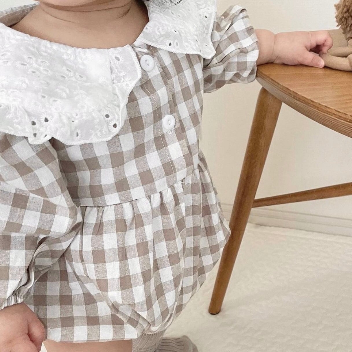 ギンガムチェックの定番で可愛いデザインは使いやすくお出かけ着におすすめです♪