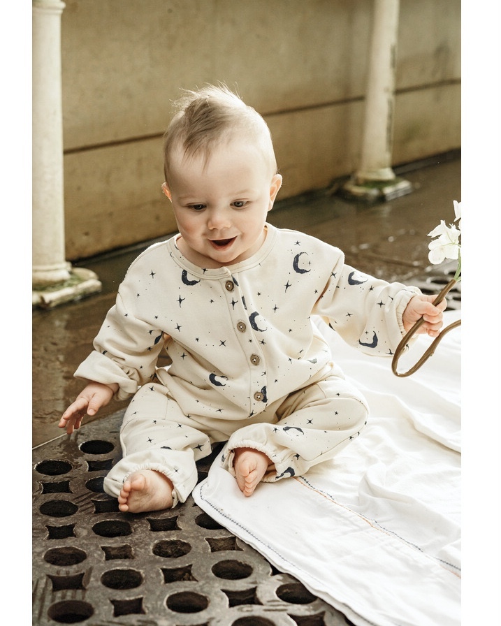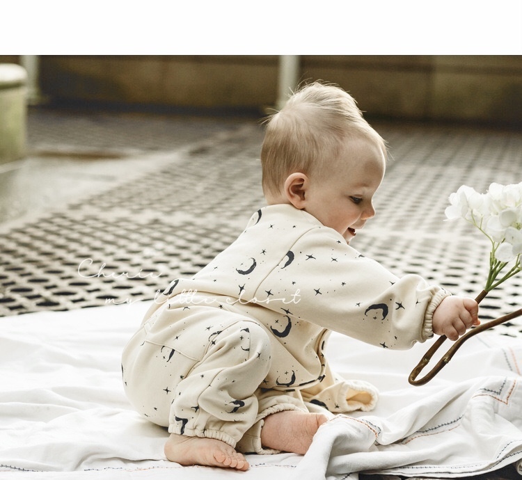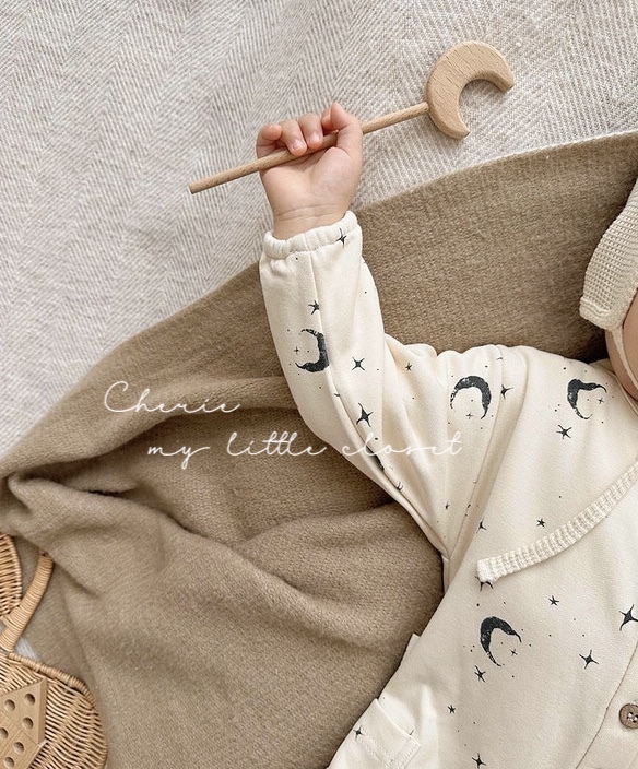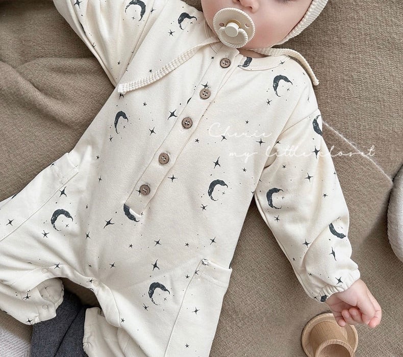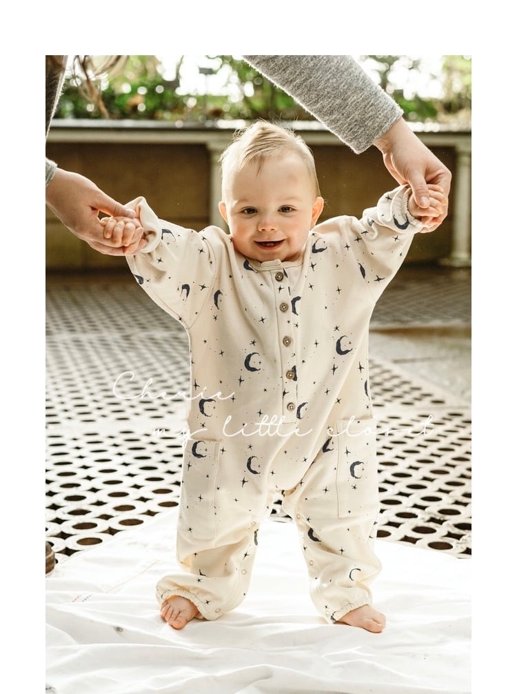 ムーンデザインが可愛いベビーロンパース。