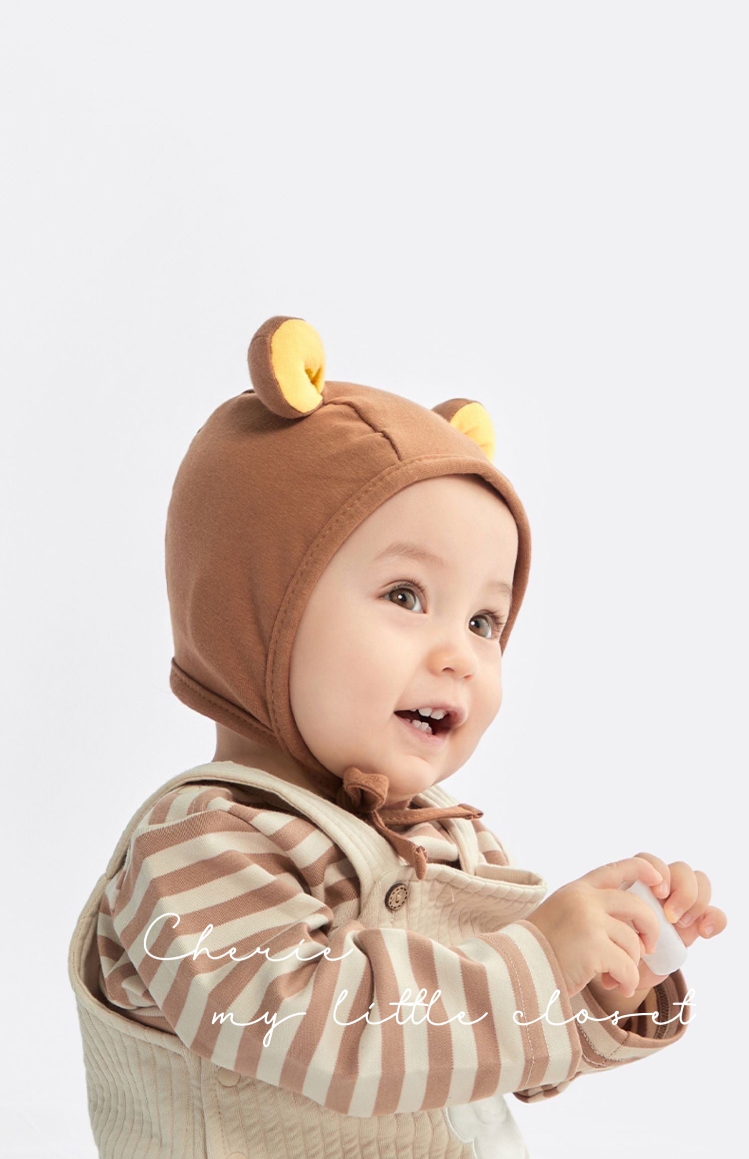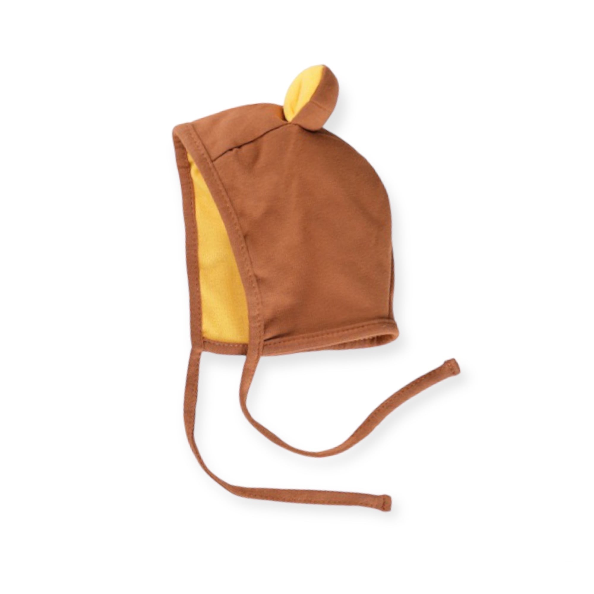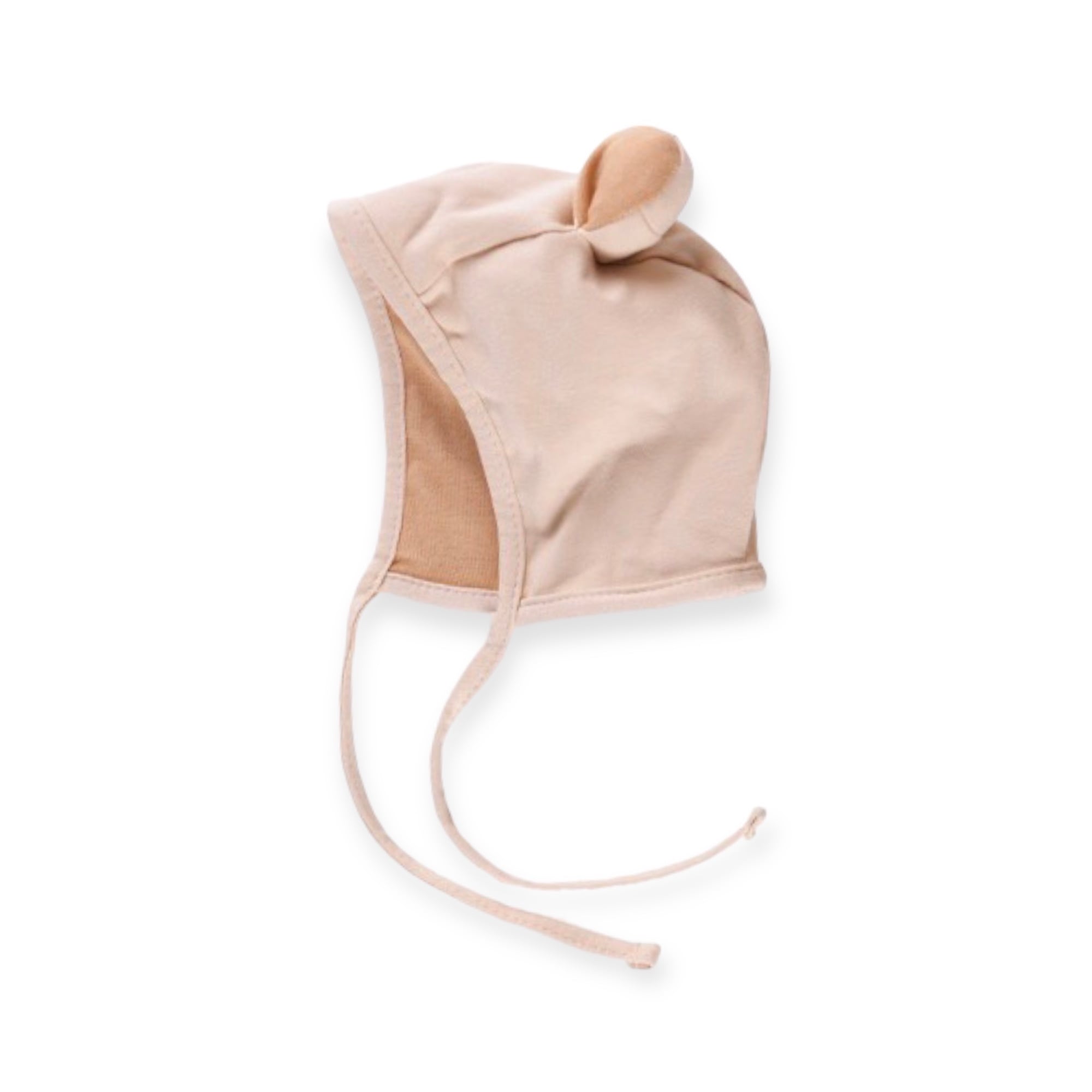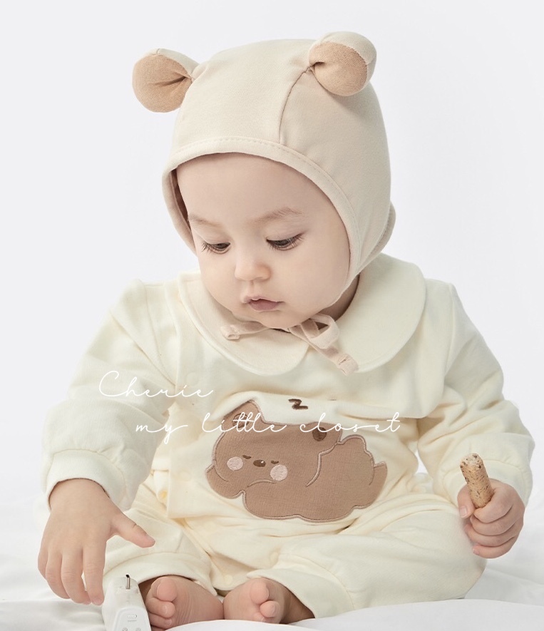 クマさんのような耳が可愛いベビーボンネット。