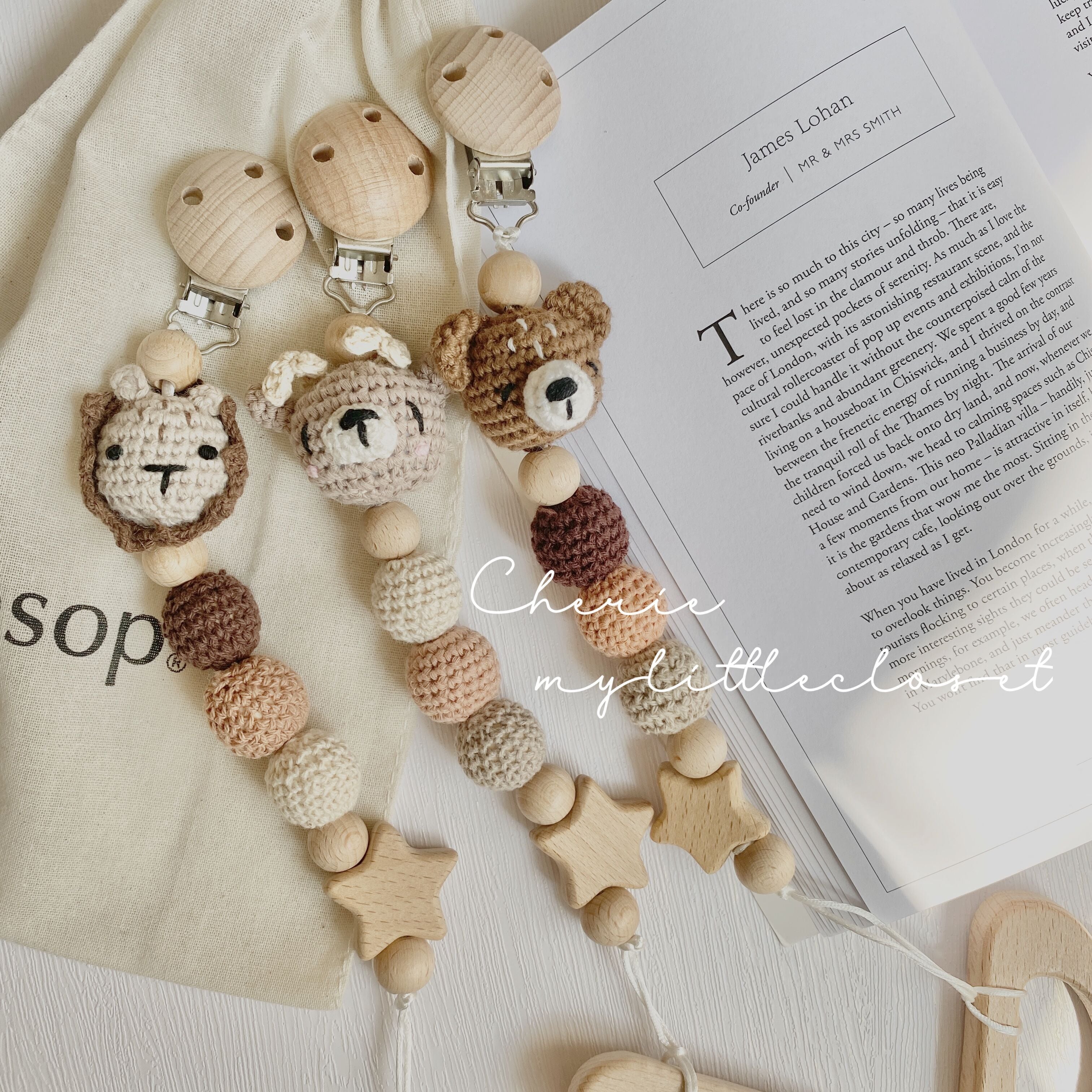 つい無くしてしまいがちなおしゃぶりもマルチホルダーでスタイやお洋服につけておくと安心です◎